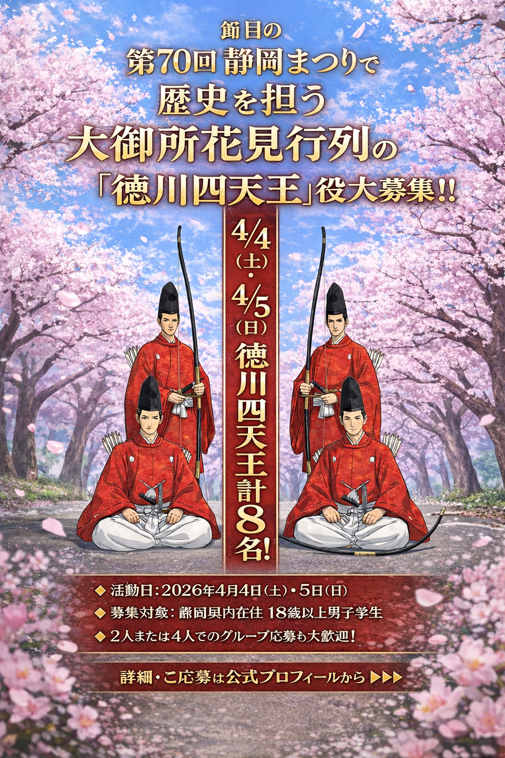 🌸静岡まつり大御所花見行列🌸『四天王』役を大募集★★★★ 18歳以上の学生限定★★★★